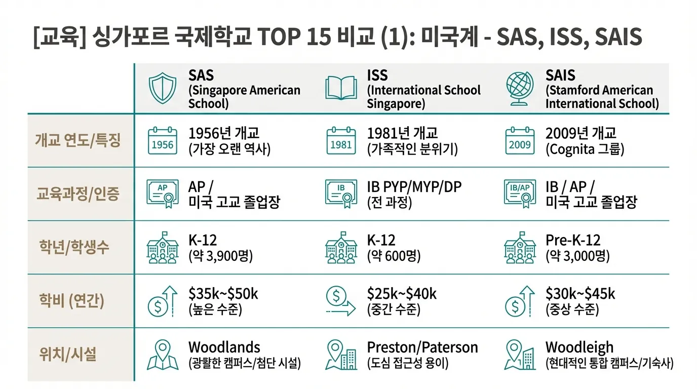 싱가포르에 처음 오면 다들 이것 때문에 밤잠 설치며 고민하시죠? 바로 우리 아이가 다닐 '학교' 문제인데요. 특히 미국 대학 진학을 염두에 두거나 자유로운 분위기를 선호하는 부모님들은 미국계 학교를 가장 먼저 리스트에 올리시곤 해요. 하지만 학교마다 학비도 천차만별이고 커리큘럼도 조금씩 달라서 선택하기가 쉽지 않거든요. 오늘은 싱가포르에서 가장 인지도 높은 미국계 국제학교 3곳을 꼼꼼하게 비교해 드릴게요.