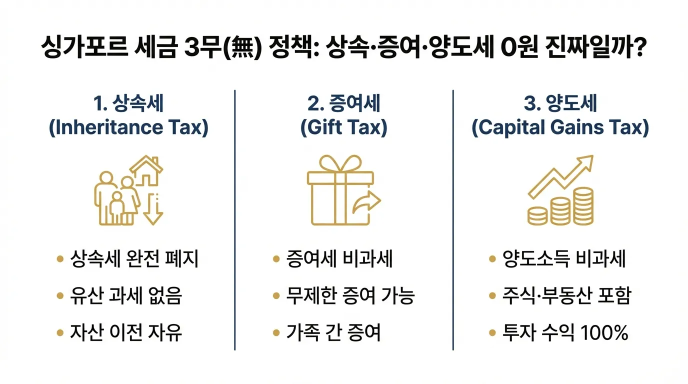 저도 처음 싱가포르에 정착했을 때 한국과는 너무 다른 세금 체계 때문에 깜짝 놀랐던 기억이 나요. 특히 자녀에게 자산을 물려주거나 투자를 계획 중인 부모님들이라면 싱가포르의 '세금 3무(無)' 정책은 놓칠 수 없는 매력이죠. 오늘은 2025 ~ 2026년 최신 정보를 바탕으로 실질적인 세금 혜택을 정리해 드릴게요.