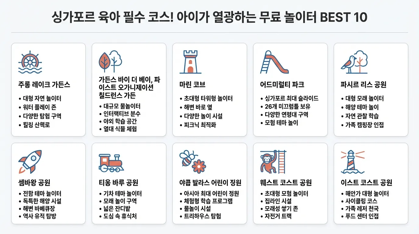 하지만 날씨가 워낙 덥다 보니 무턱대고 나갔다가는 아이도 부모님도 금방 지치기 마련이죠. 그래서 오늘은 제가 직접 발로 뛰며 조사한, 가성비와 가심비를 모두 잡은 싱가포르 무료 놀이터 BEST 10을 정리해 드릴게요. 주말 계획 세우실 때 이 포스팅 하나면 충분하실 거예요!