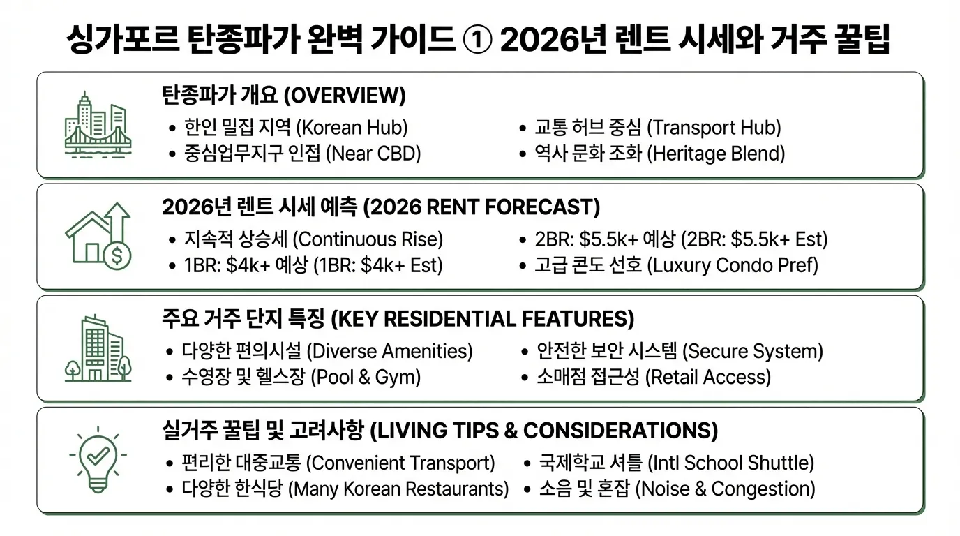 저도 처음 싱가포르에 왔을 때 탄종파가 거리를 걷다 보면 한국인지 싱가포르인지 헷갈릴 정도로 친숙한 풍경에 마음이 놓였던 기억이 나네요. 오늘은 2026년 최신 정보를 바탕으로 탄종파가의 주거 환경과 렌트 시세, 그리고 실제 거주 시 꼭 알아야 할 팁들을 아주 자세히 공유해 드릴게요.